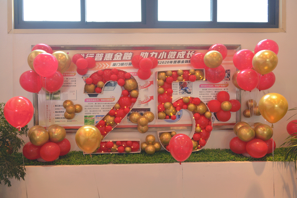 為慶祝廈門銀行的生日,各地網(wǎng)點裝飾一新,堆頭、吊旗、貼紙……一個個別出心裁又滿是溫暖的裝飾,訴說著每一個廈門銀行人的祝福。