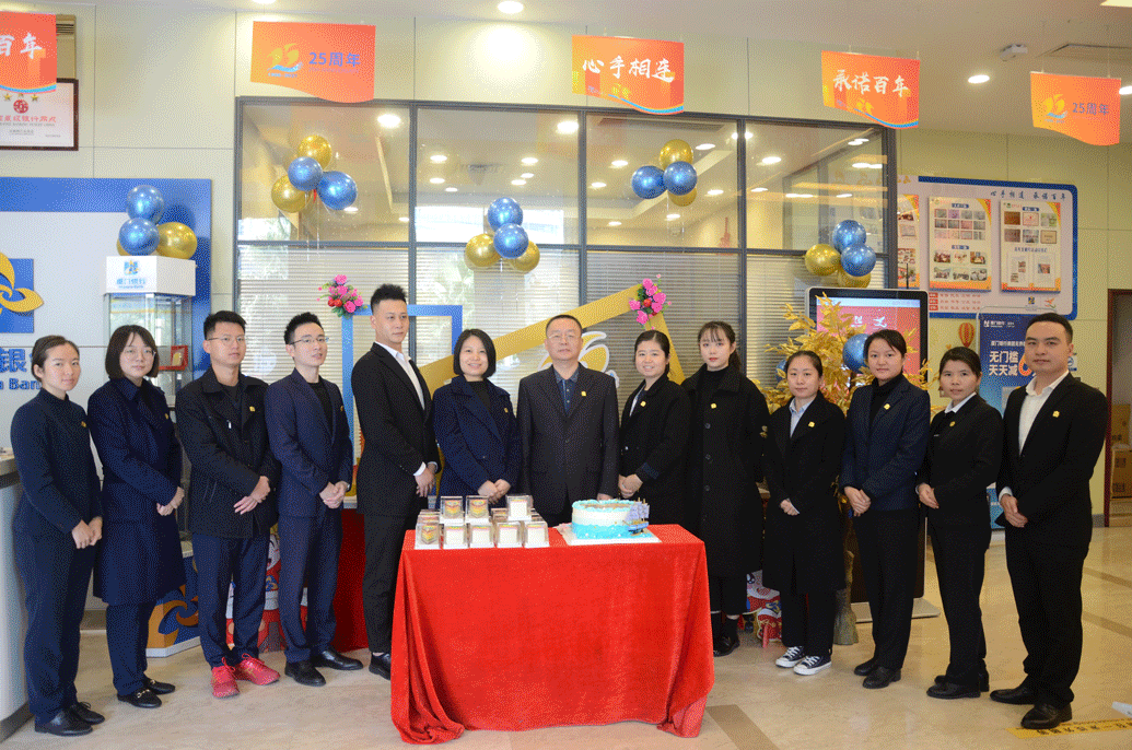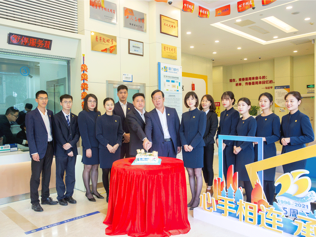 25歲正青春,奮楫揚(yáng)帆啟新程,廈門銀行將堅持以“聚焦中小、深耕海西、融匯兩岸,打造價值領(lǐng)先的綜合金融服務(wù)商”的戰(zhàn)略愿景為目標(biāo),堅守立足地方經(jīng)濟(jì)、服務(wù)中小企業(yè)、面向城市居民、服務(wù)兩岸臺商的市場”定位”,銘記百年承諾,與客戶心手相連,奔向更加美好的明天。