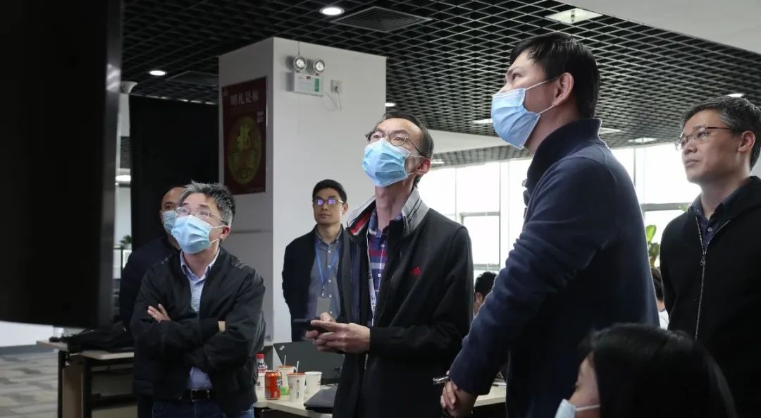 副行長兼首席信息官鄭承滿(左一)、副行長兼首席風險官謝彤華(左二)現(xiàn)場指導(dǎo)投產(chǎn)工作。