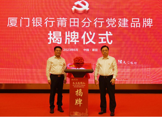 2023年6月8日下午,廈門銀行莆田分行“木蘭黨旗紅”黨建品牌正式發(fā)布。儀式上,廈門銀行黨委副書記、監(jiān)事長張永歡,莆田分行黨委書記、行長謝曉明共同為“木蘭黨旗紅”黨建品牌揭幕。