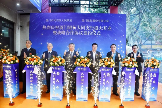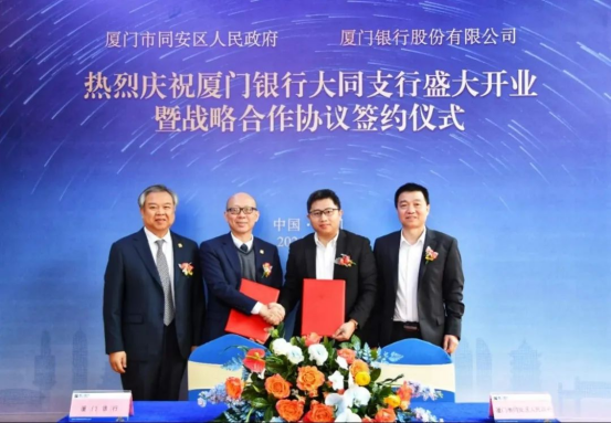 2024年3月11日,廈門銀行大同支行對外揭牌開業(yè)。開業(yè)儀式上,廈門銀行與廈門市同安區(qū)人民政府簽署戰(zhàn)略合作協(xié)議。廈門市同安區(qū)人民政府常務副區(qū)長李祖光、廈門市同安區(qū)財政局局長林曉龍、廈門市同安區(qū)工業(yè)與信息化局局長徐火祥、廈門市同安區(qū)建設與交通局局長葉國生、廈門市同安區(qū)人力資源與社會保障局局長梁永忠、廈門銀行行長吳昕顥、副行長兼廈門銀行廈門業(yè)務管理總部總監(jiān)莊海波等出席簽約儀式。