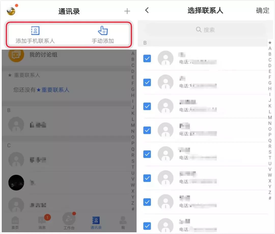 3.1企業(yè)管理員導(dǎo)入員工信息,進(jìn)入【通訊錄】-【添加】菜單即可批量操作。