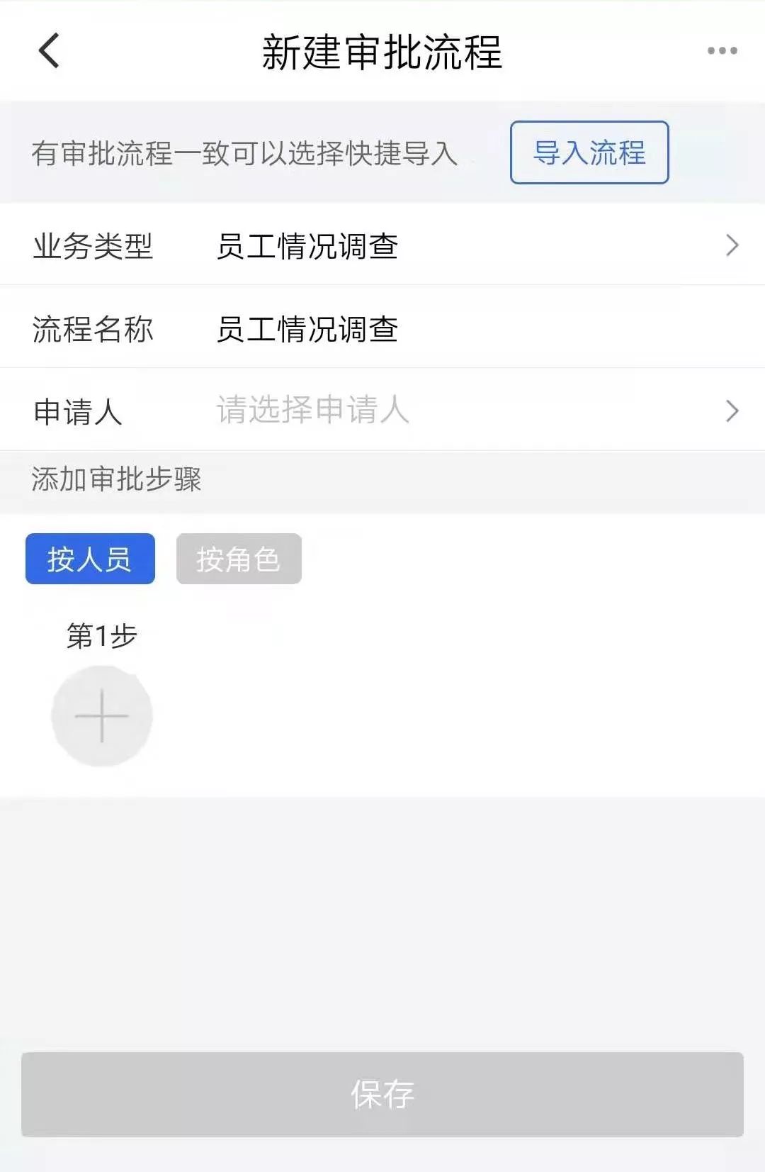 3.2企業(yè)設(shè)置審批流程,進(jìn)入【企業(yè)管理】-【流程管理】-【新建審批流程】,點(diǎn)擊“保存”。